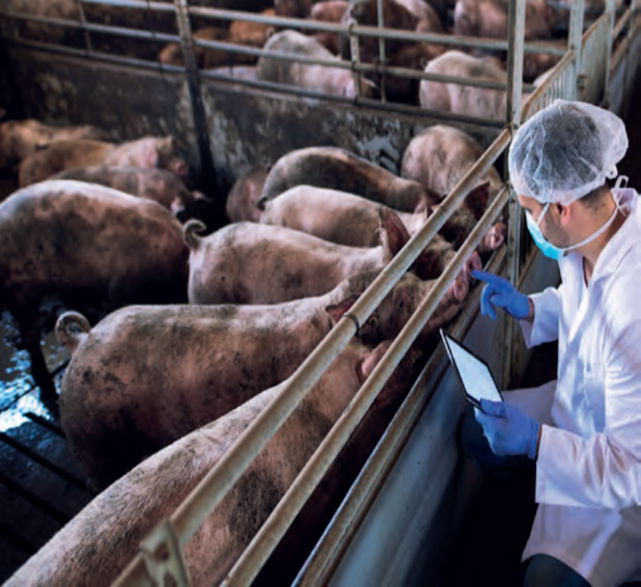 استفاده از اشعه ماوراء بنفش در تولیدات دامی به طور فزاینده ای مورد استفاده قرار می گیرد. در مزارع خوکی، تولیدکنندگان به دنبال راه هایی برای بهبود امنیت زیستی در پاسخ به بیماری های مکرر و ویرانگر برای حیوانات، مانند آنفولانزای خوکی آفریقایی (ASF) هستند. اگرچه این ویروس تهدیدی برای سلامت انسان نیست و نمی تواند از خوک به انسان منتقل شود، اما تأثیر شدیدی بر اقتصاد پرورش دهندگان خوک دارد.